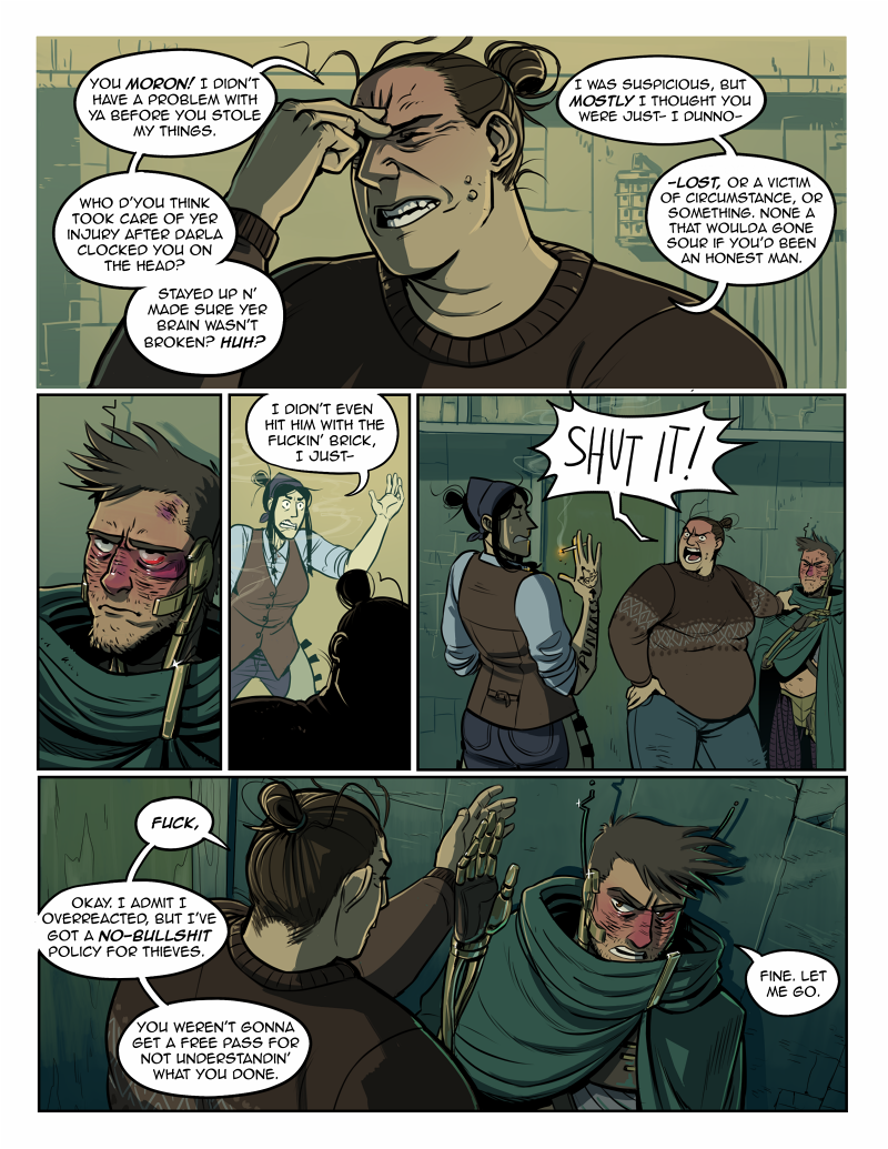 Poet's getting a little anime lookin' in that last panel there. I just finished reading part 6 of Jojo's Bizarre Adventure and I keep thinking about it while I draw! It was a great comic! Part of me really wishes I could draw as fast as Araki Hirohiko, though.